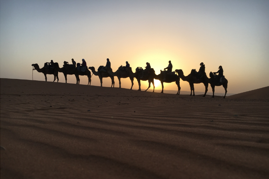 Participa en paseos en camello, maravillate con la impresionante puesta de sol y recibe el amanecer en medio del majestuoso paisaje del Sahara.